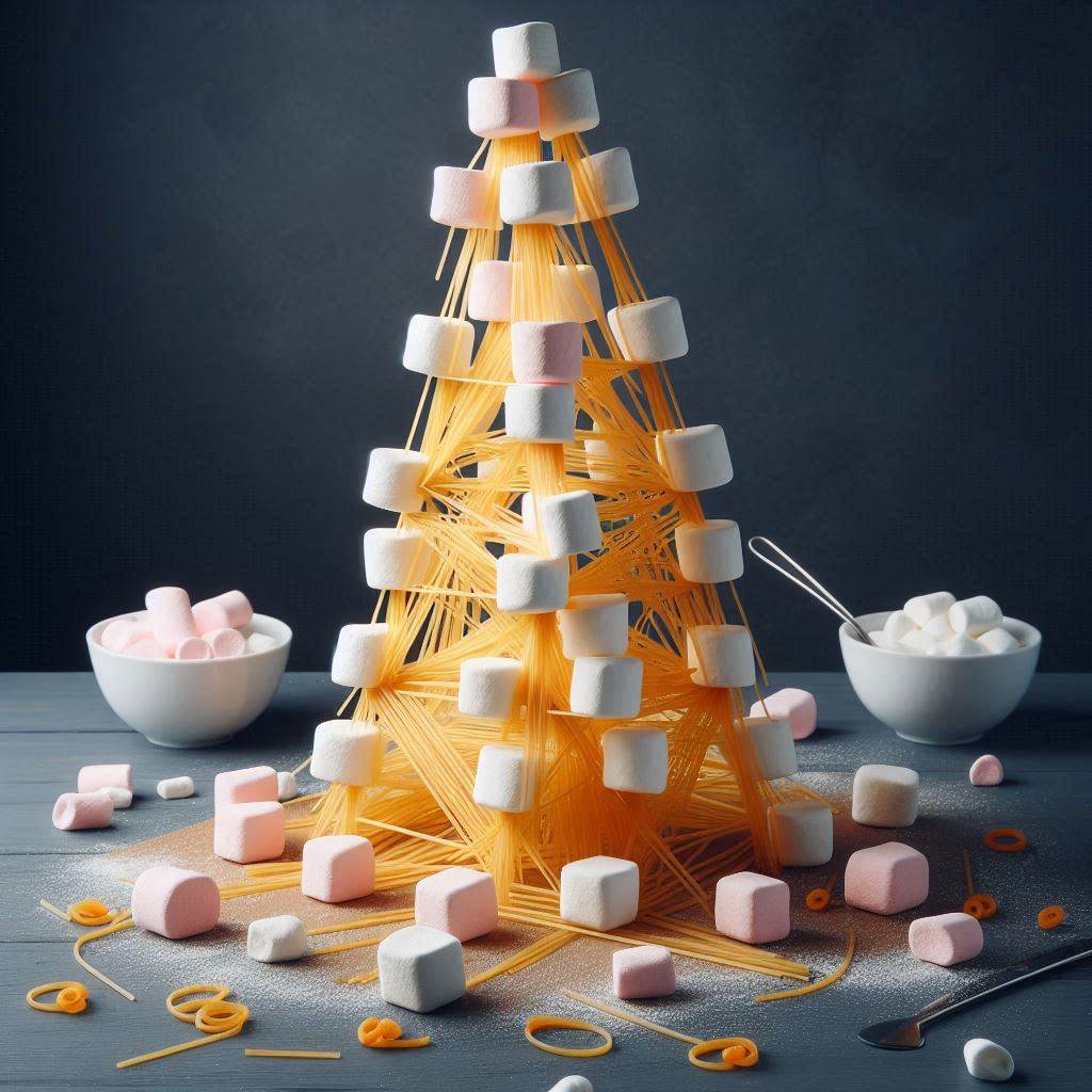Konkurranse i marshmallow og spaghetti tårn!